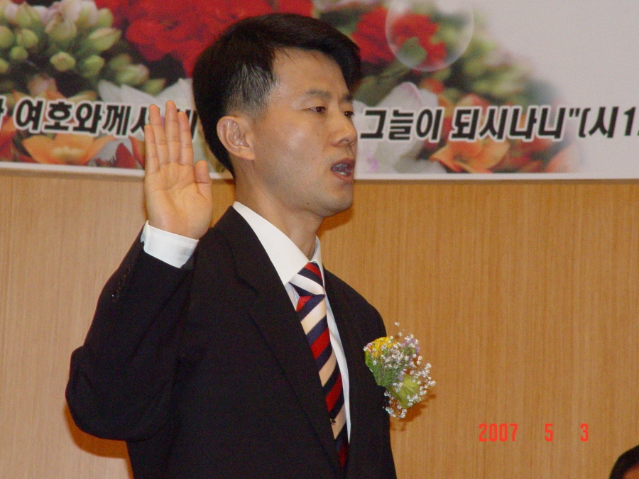 목사임직식때 장세광목사가 선서하는 장면