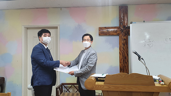 2021년 8월 12일(목) 원앙교회에서 목사후보생 7명이 고시에 합격하여 장학금을 전달하였습니다.