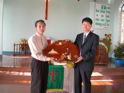 걍기남푹앙교회 목사님께서 우리 노회에 액자를 선물하시는 모습입니다.
