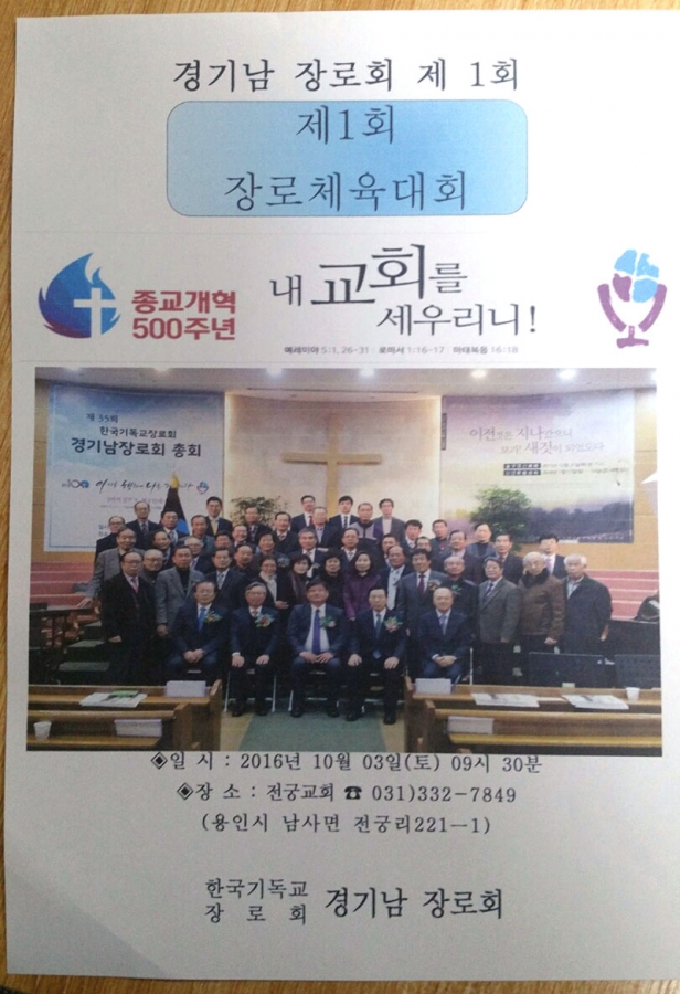 제1회 경기남장로회 체육대회가 2016년 10월 3일 전궁교회 잔디구장에서 열렸습니다.