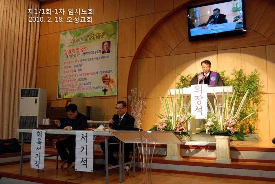 제171회 정기노회 1차 임시노회 2010년 2월 18일(목) 후2시. 오성교회