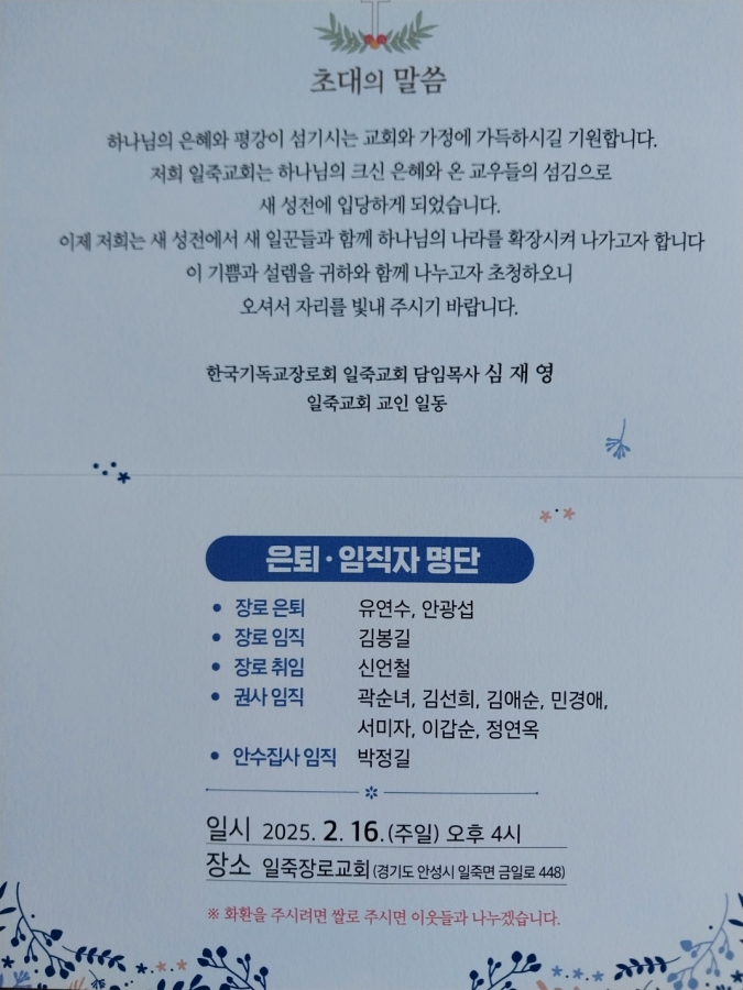 초대합니다 [일죽교회 새성전입당, 장로은퇴,임직,취임,권사,안수집사 임직감사예배}