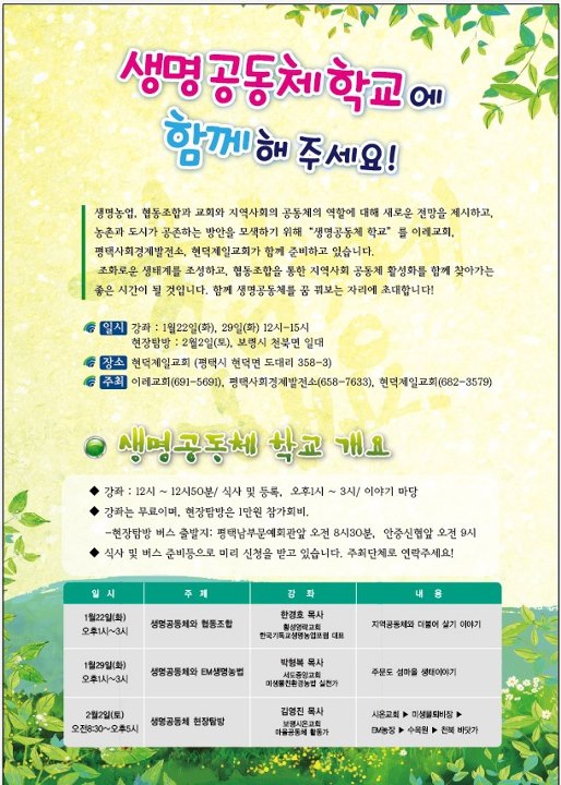 생명공동체 학교에 초대합니다.