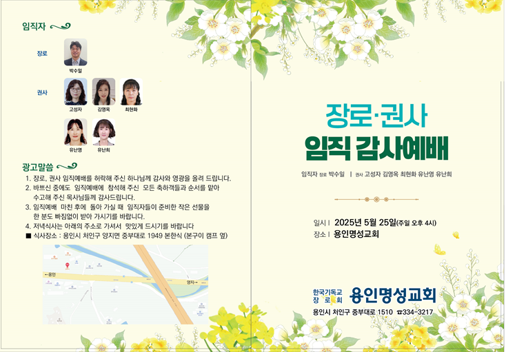 용인명성교회 장로 및 권사 임직예식에 초대합니다.