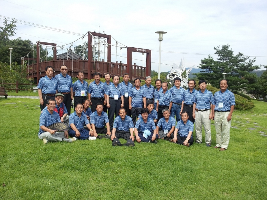 자유시간에 예당저수지 조각공원에서 단체사진을 찍었습니다.
