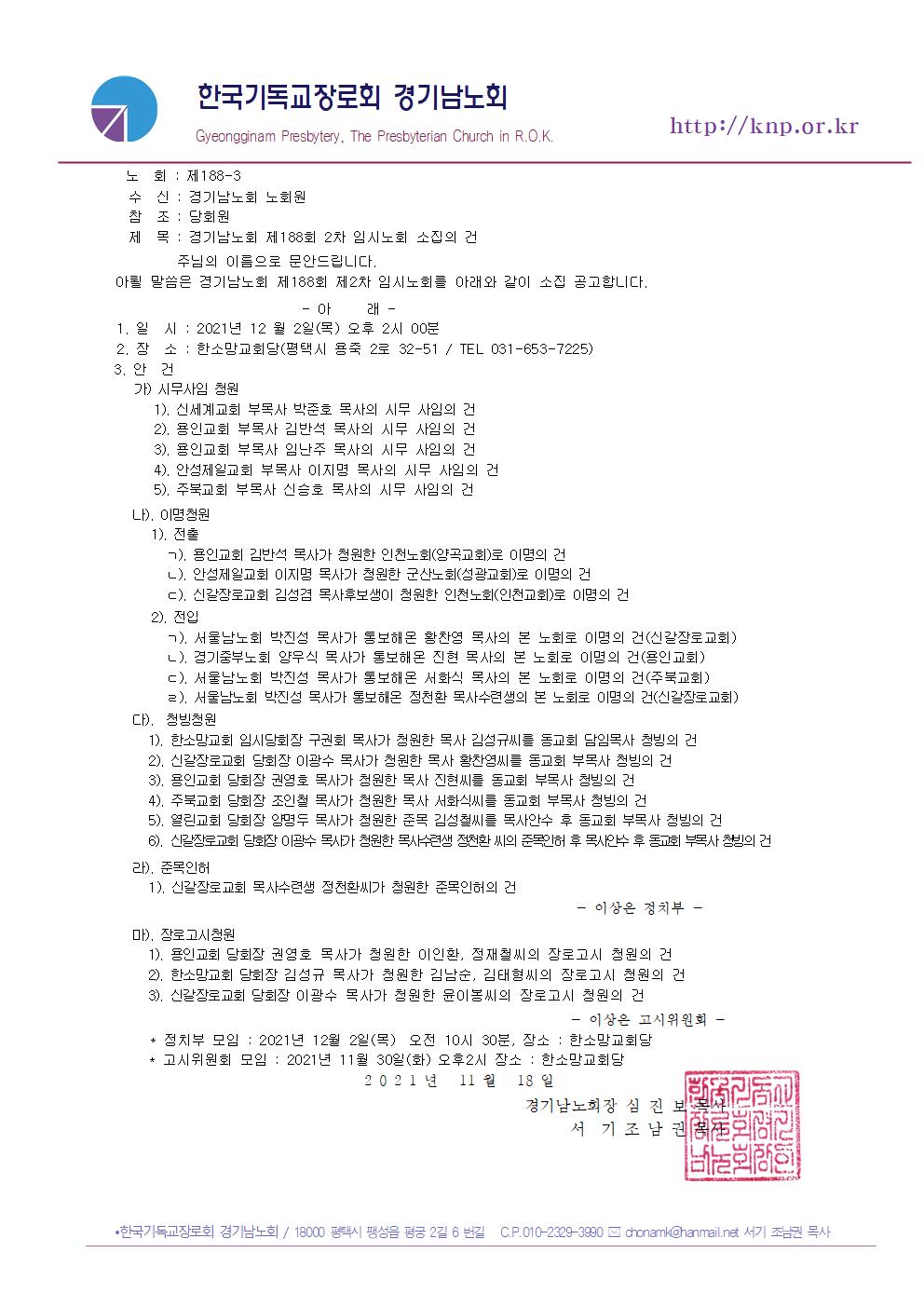 (예금주: 한기장경기남노회) 홈페이지관리: 김현일 목사