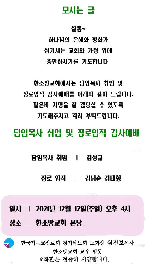(예금주: 한기장경기남노회) 홈페이지관리: 김현일 목사
