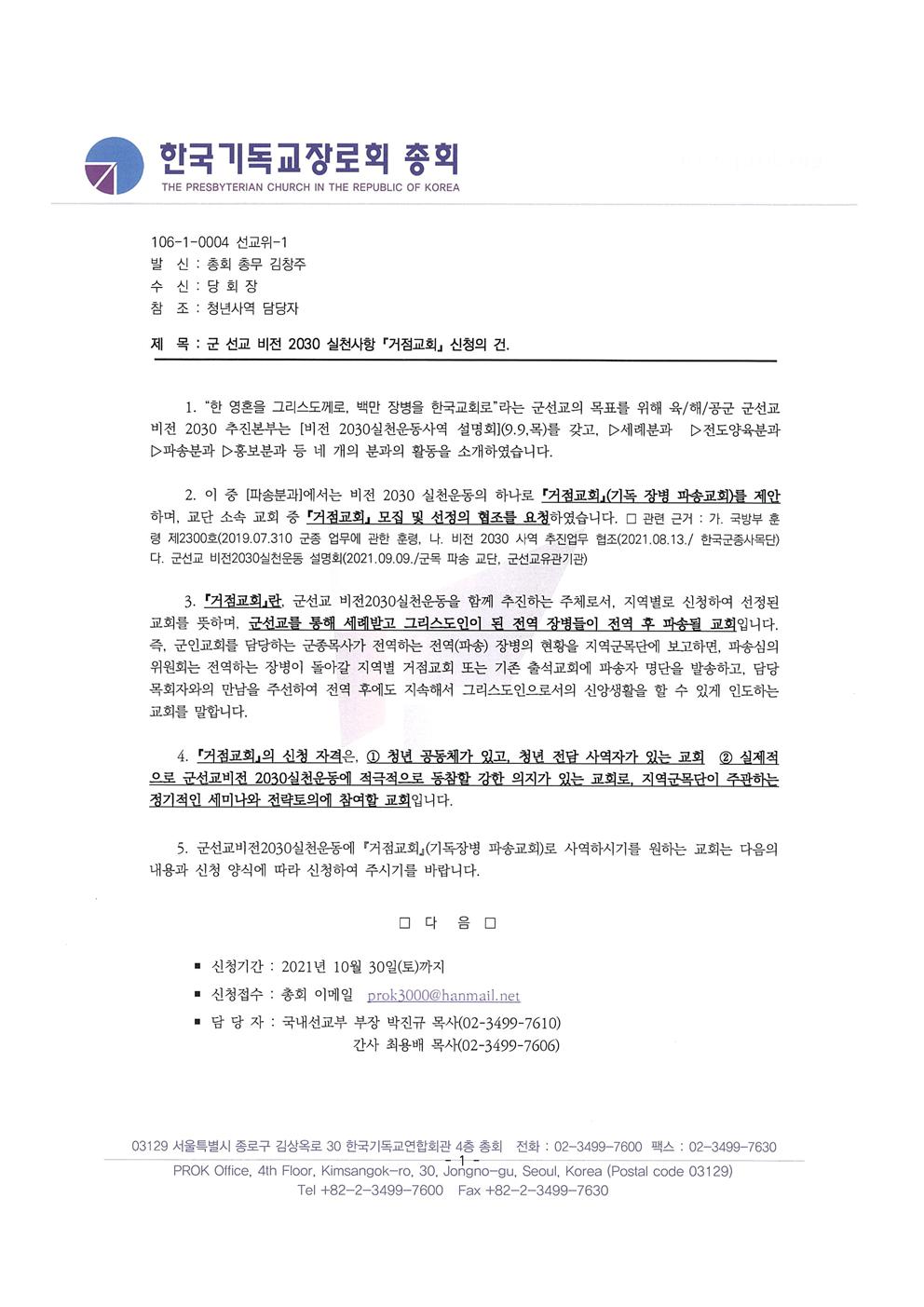 비전2030에서는 군 거점교회의 신청을 받습니다.