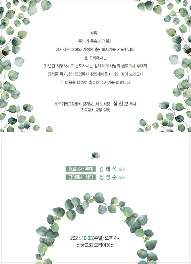 [노회서기부] 전궁교회 (김태석목사 은퇴 및 장성준 목사 취임식)
