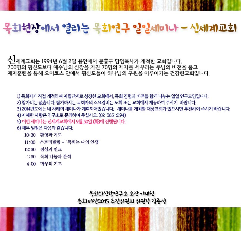 유익한 프로그램이오니 노회원들의 많은 참여 부탁드립니다.