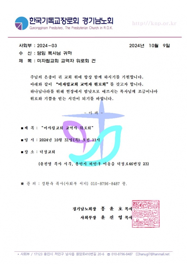 (예금주: 한기장경기남노회) 홈페이지관리: 김현일 목사