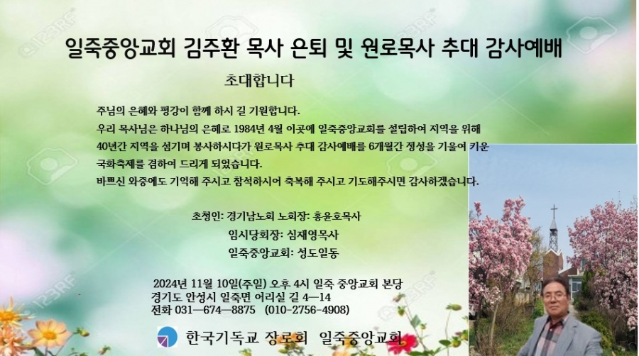 [노회서기부] 일죽중앙교회 김주환목사 은퇴 및 원로목사 추대 감사예식