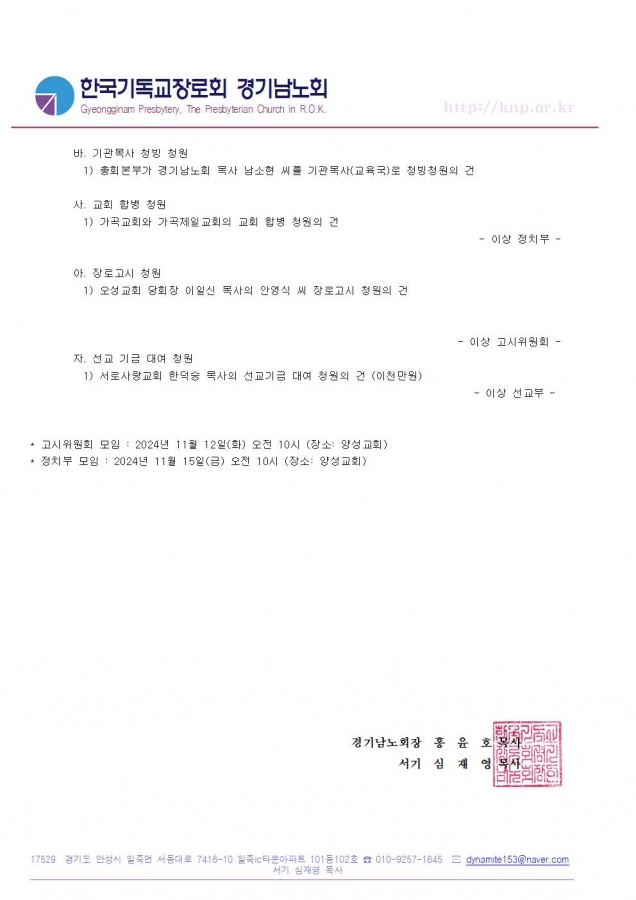 (예금주: 한기장경기남노회) 홈페이지관리: 김현일 목사