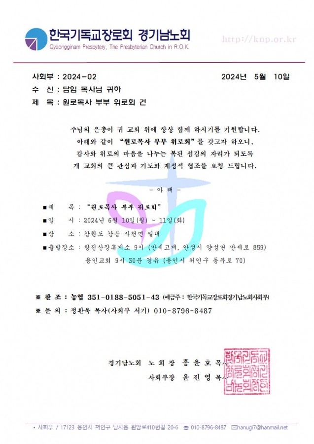 (예금주: 한기장경기남노회) 홈페이지관리: 김현일 목사