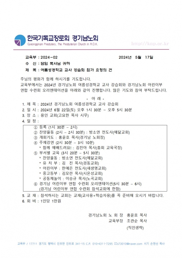(예금주: 한기장경기남노회) 홈페이지관리: 김현일 목사