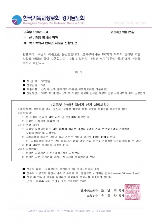 (예금주: 한기장경기남노회) 홈페이지관리: 김현일 목사