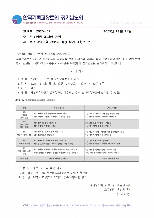 총회 교육국에서 파견하는 우수한 강사진의 강의로 준비될 예정이오니 많은 관심 바랍니다.